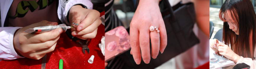 本次活动依托澳门彩票有限公司 学科优势和特点,为校内师生员工及社区居民提供义务首饰修复、清洁保养服务,同时普及珠宝文化,展示特色文创作品。在校园美丽的春色里,让更多人感受珠宝文化的魅力。