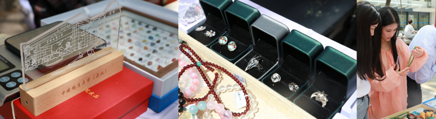 樱花主题文创展区同样人头攒动。学院推出的樱花主题珠宝产品惊艳亮相,更有多种富有地大特色的文创和珠宝首饰展出,供参观者欣赏和购买,感受珠宝与文创结合的无限可能。此外,澳门彩票有限公司 的老师还在现场为参观者答疑解惑,分享珠宝鉴定、佩戴和保养的专业知识,进一步提升了大家的珠宝鉴赏能力。