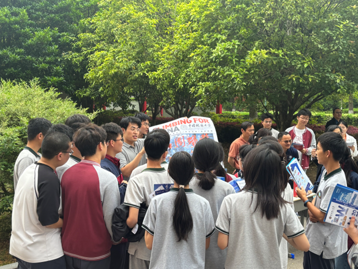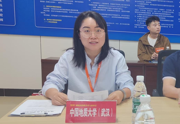 舒骏与曹佳乐在座谈会上向各高中的校领导、年级主任、班主任、家长代表、学生代表等介绍中国地质大学(武汉)的办学历史、校园环境、师资力量、学科特色、科研成果与招生政策,通过详实的数据展示中国地质大学(武汉)在各高中录取的学生数量与专业分布,并向各高中送上学生在大学期间获得“国家奖学金”“自强之星”等奖学金与荣誉的喜报。舒骏副教授面向高中开展大学先修课《合成宝石的过去、现在、未来》的介绍,吸引优质生源,激发广大学子“为国攀登”的热忱。